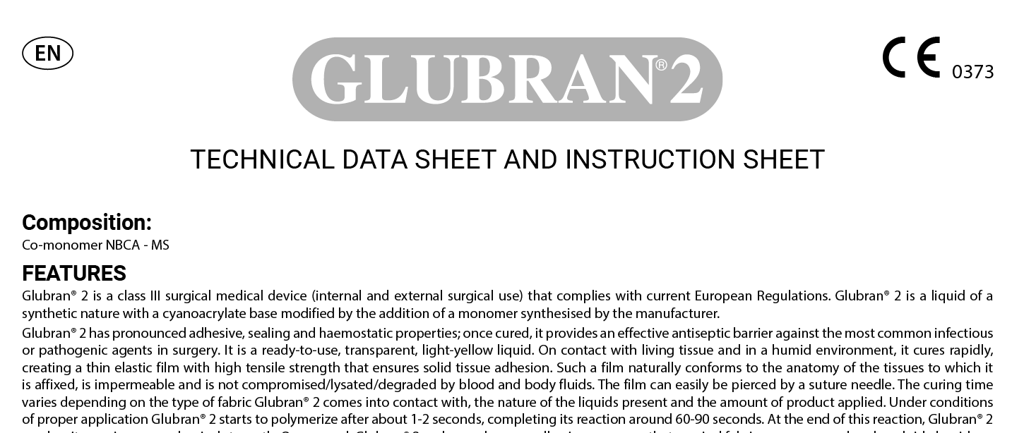 Synthetic surgical glue Glubran® 2 is a Class III CE-marked medical device for both internal and external use.